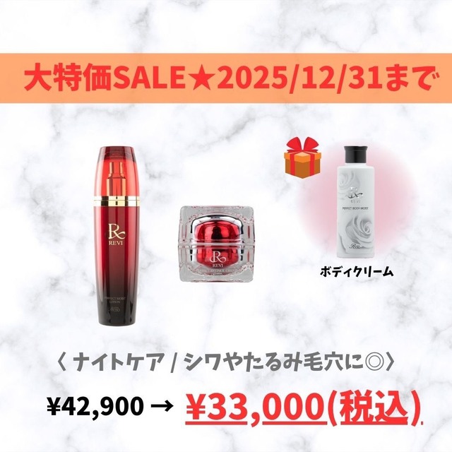 《高保湿セット》 冬の乾燥対策・シワたるみケアに◎ ☆パーフェクトモイストローション ☆パーフェクトレチノールクリーム(夜用) ◇ボディモイスト¥9,900プレゼント 12/31まで ¥42,900→¥33,000